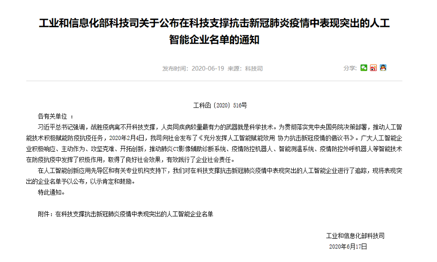 同时,918博天堂-www.918.comAI疫情防控设备、“深目”系统、“天图”系统等3款产品/方案入选了国家人工智能标准化总体组秘书处发布的第一批34款有助于疫情防控的人工智能产品和解决方案名单。